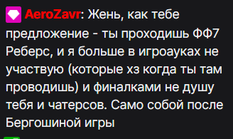 >>25506241 Сам в ахуе, читаю тред и не понимаю о чем вообще пишут, в начале деньги за стрим требовала, потом Лёва появился и Завр бомбанул, затем клиповский опять клипы бессмысленные скинул, и вроде началась игра, которую выбрал Тиллтруша. Ну, так по крайней мере выходит из того, что я тут прочел, тред вслед за стримершей тоже шизеет