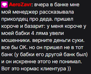 >>25510189 За стрим до говорит собираюсь подсосаться для поездки в Тай с "братюнями", а потом разговор "может вместе?" и "агась, можно", вот это шизо теории, прям один в один Франция, так симпы перемогают, отрицая действительность? Сам кста охуел от этих "братюнь", я когда она это сказала подумал что речь о Рин с подсосами, а оказалось, что братюни это буквально, про Кашу с Мавфаней и их шерсть.