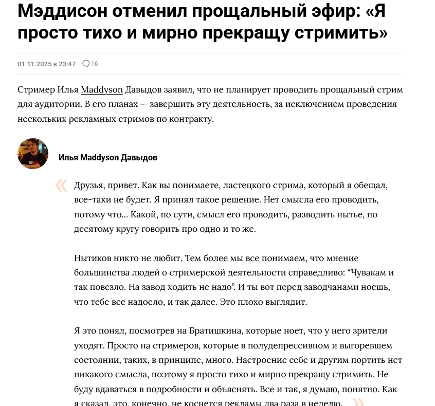 >>25500886 если честно, он меня напугал не знаю, как без его стримов жить
