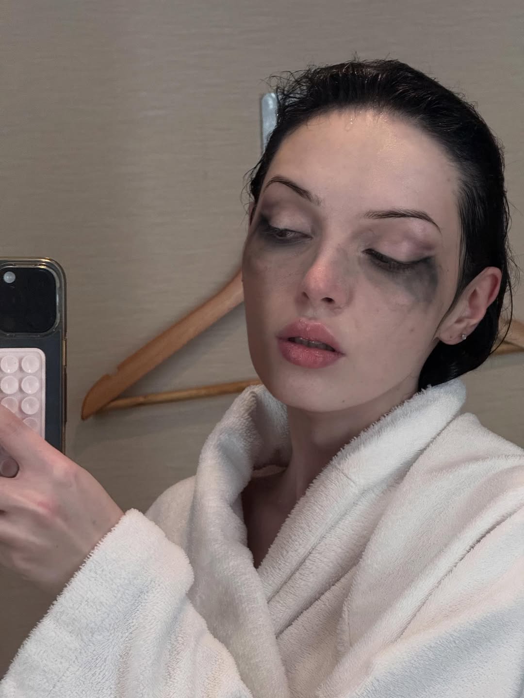 🤩Нам потребовалось две примерки, чтобы подогнать изделие под параметры Даши и утвердить на ней все элементы. Затем я принялся изготавливать обувь — балетки с текстурой, перекликающейся с основным костюмом. Они были сделаны также из ветоши и обожжённого кружева, прошитого вручную и покрытого силиконом для фиксации.