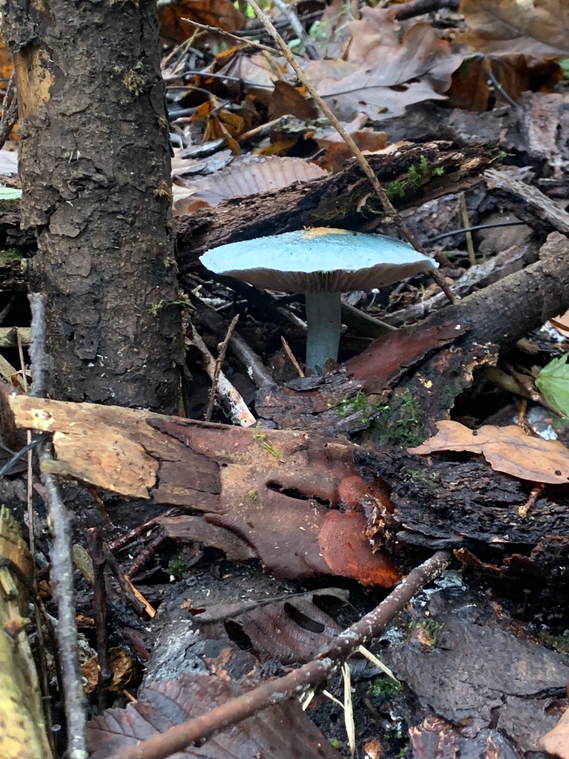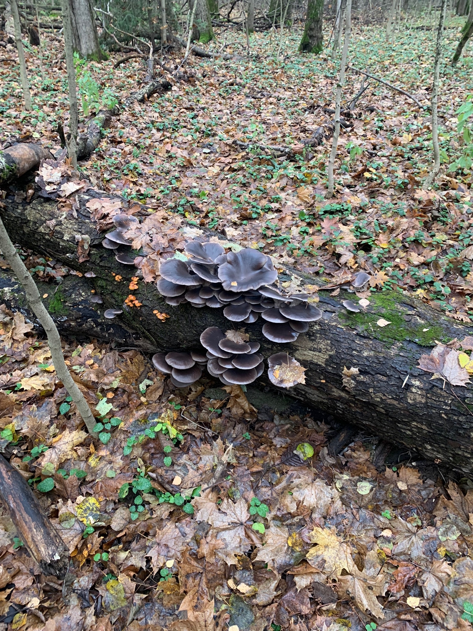 Очередная вылазка, менее уловистая, но сносная. Вешенки уже сходят + конкуренция ебейшая из-за вых. Также нашел непонятный синий гриб в единственном экземпляре и логово Дениса Хамитова.