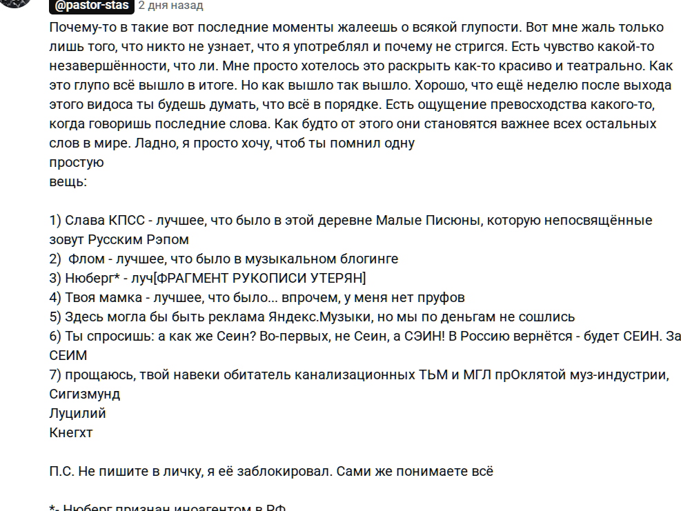 Когда начинаешь вспоминать, с кем этот человек появлялся, где мелькал, как быстро входил в доверие - становится не по себе. Это тот же паттерн, что у задержанного в Польше бывшего активиста ФБK Рогова, только вместо “штабов” - сцена, вместо митингов - стримы, а вместо агиток - треки.