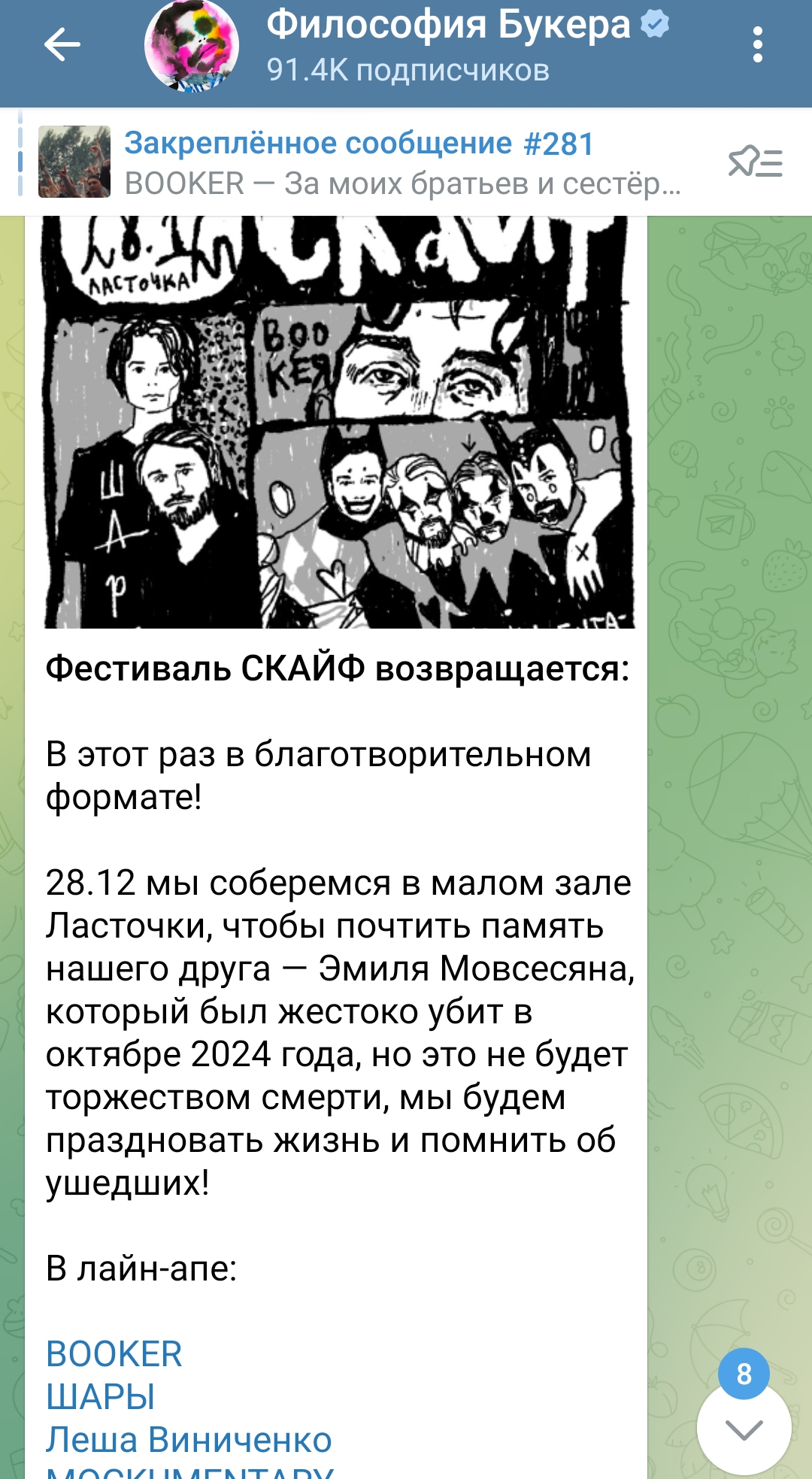 Я таких видел десятки: всегда те же признаки - неясные источники дохода (“живёт в Пивососисочной Бюрократоублюдии, но без концертов”), чересчур активное участие в чужих делах (“всегда готов помочь, но никогда непонятно, чем живёт”), дружба с нужными людьми и эффектный либеральный фасад. Это ровно то, как делаются внедрения в культурную среду: создать вокруг себя ауру «своего», смешного, чуть безобидного - а потом начать узнавать, кто с кем общается, кто куда донатит, смоллтоки с Певчих и с Нойзом в закулисье либерашьих концертов.