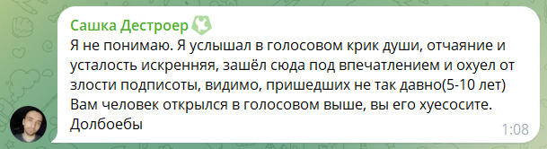 Я не использую чат-гпт для создания своих постов. И так же, считаю ущербными людей, пишущих при помощи ии. Такие блогеры не способы выражать свои мысли без боязни осуждения. Они хотят, чтобы всё выглядело вылизано и политкорректно. Это вычисляется за пять секунд и вызывает смех. И отдаёт, прям, какой-то дешёвкой. Особенно, когда пишет популярный человек.