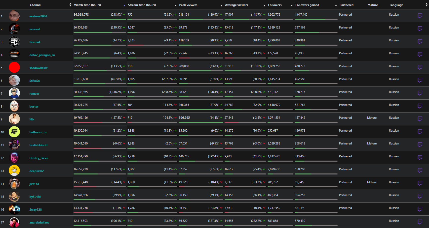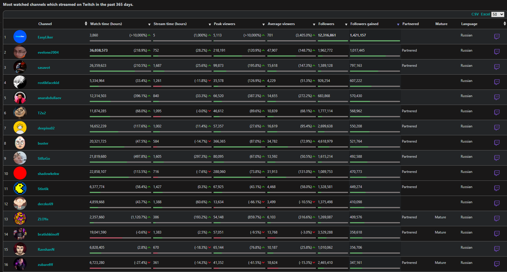 >>25516554 Нормальная стата. У анала при всем хайпе и маленьком количестве подписчиков смог обогнать бустера на 50к по приросту за 25 год, когда у типа уже больше 4 лямов. Сильный хайп, не иначе😁