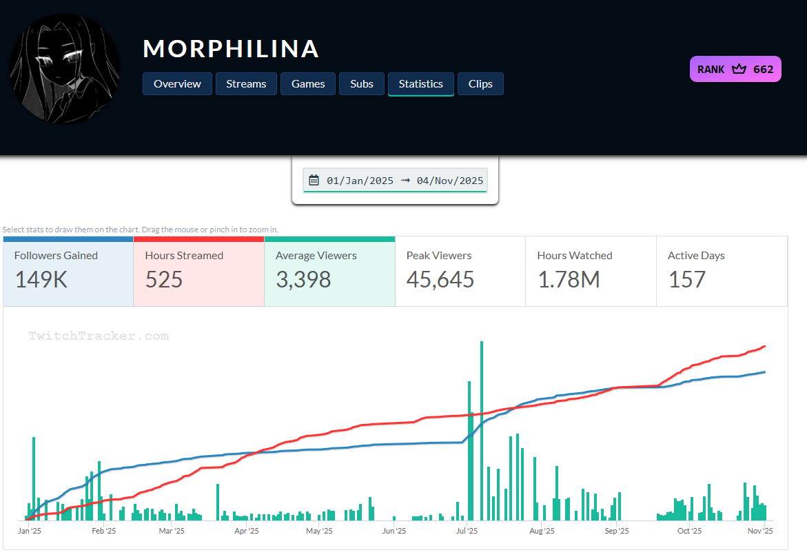 >>25517036 За что добавлять Генсуху? Много стримила ? нет, Много больших онлайнов было? Нет. Морфилина и стримила больше и больше было пачек на стримах и тд