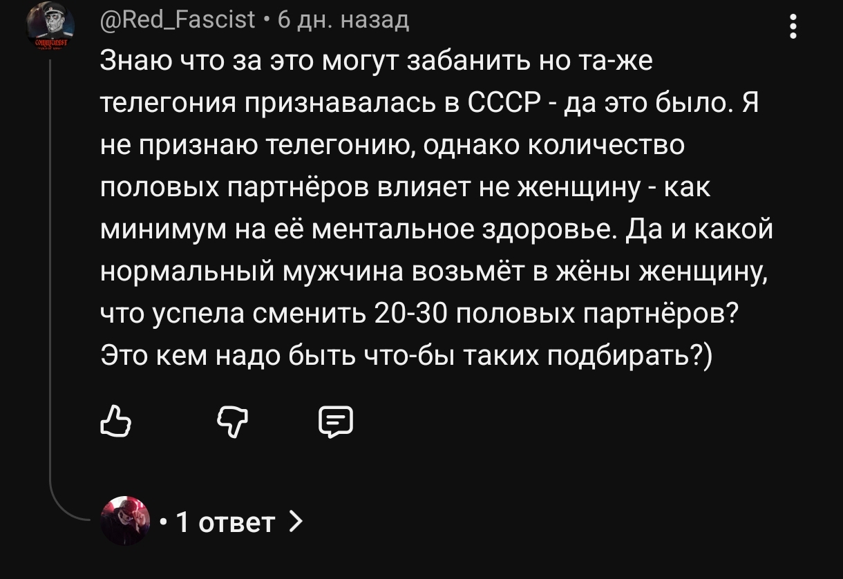 >>25516614 Погоди, твоя аудитория это люди которые неирноично верят в концепт красного фашизма и деформацию пизды по средствам пениса, который подселяет в матку следы своего генетического кода, модифицируя ДНК женщины? Это единственный комментарий в твою поддержку под его роликом.