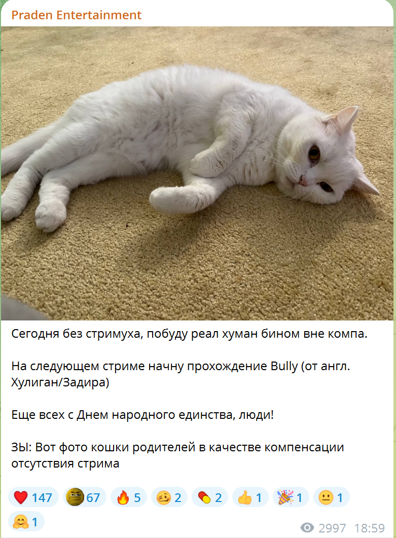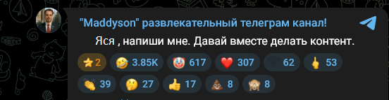 Он сказал что если под этим голосовым https://t.me/maddysontg/5034 какой то значок эмодзи наберет больше голосов чем клоун, то буду играть в игры или смотреть нейрохрючево, и 172к проголосовало за значок говно, 146к проголосовало за клоуна, а 118к за сердце. Если подумать то: 146к за клоуна это хейтеры. 118к за сердце это фанаты. 172к это скорее всего просто тролли, но думаю часть их них фанаты. То есть фанатов не поленившихся что то сделать в России у него получается около 150-200к если считать сердце и часть значков говно.
