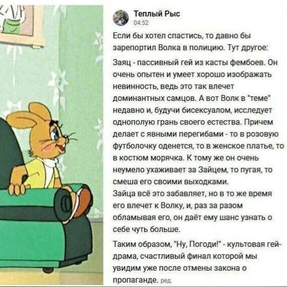 >>25541873 Вообще не удивлен, на пляже свинья лежит сиськами сверкает он бегает за зайцем, свинья это выбор волка, если мужик блять трахни там столько сисек и она не против. Если ты волк скушай свинью блять там на неделю еды нахуй заяц на один зуб. По итогу волк пидор бегает за геем зайцев все сходится.