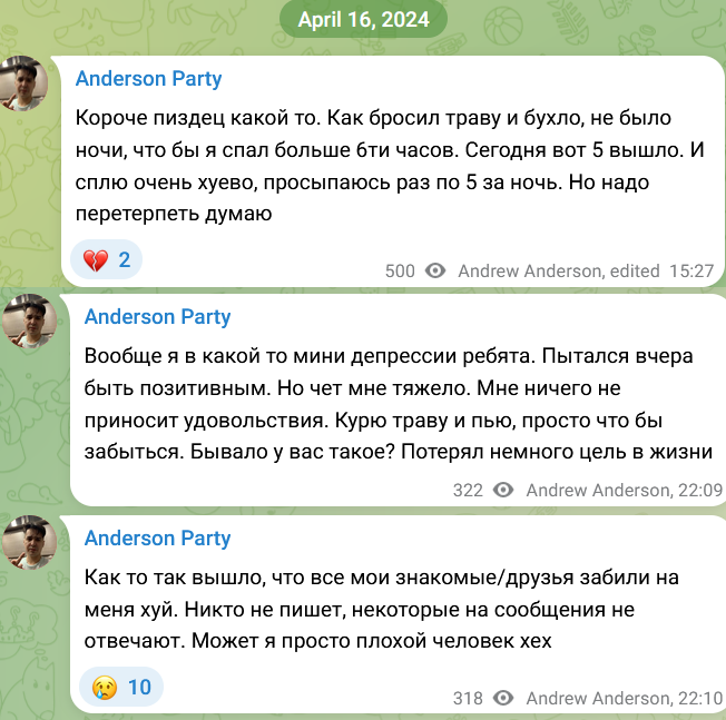 >>25543178 >в рехаб А толку? Нарики бывшими не бывают, их ничего не исправит, они все равно возвращаются рано или поздно, это буквально люди без воли, ими манипулировать как нехуй делать. Кстати, я ща подумал, что может поэтому чмодье его держит при себе, ручной торчок за деньгу и дозу все что угодно ему сделает всегда в любой момент. Его спасет только полная изоляция и жизнь без соблазнов, но там, где он сейчас, это невозможно