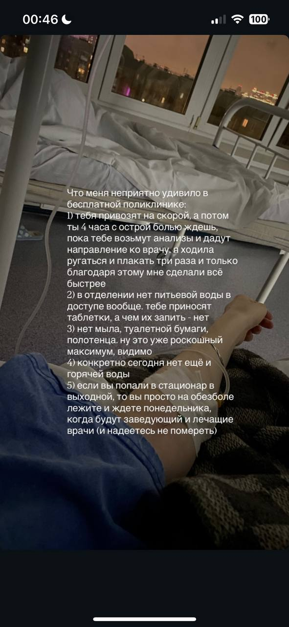 >>25548926 орунах с зумерского скота, сука всж ебанутые, В С Ж попал весной в больницу из-за пневмонии, лежал там со всякими стариками 1. если вода есть, то только из под крана, буквально, либо на обед приносят чай, всё сам должен и обязан привозить 2. холодно 3. за полторы недели не было горячей воды ни разу, спросил у мужиков кто со мной в палате лежал, был один здоровый он сказал что за месяц не видел горячей воды 4. каким то образом завтрак/обед/ужин был хуже, чем в моем детстве в нулевые, просто отвратная еда 5. врачи бесконечно где-то ходят, ладно бы они там заняты были больными, но часто кричали старики от боли и что они не могут дышать, к ним не то чтобы сразу приходили, но я так понимаю что в целом нехватка врачей лютая ибо всж с всж зарплатами 6. выпизднули домой, как только мне стало чуть чуть получше, сам с этого проиграл 7. в целом бесит тот факт, что туалетную бумагу, мыло, гель для душа, полотенце банальное и шампунь это всё надо кого-то просить привезти, этого всего нет банально даже для одиноких нищих стариков у которых никого нет, грустно, они буквально просят полотенце у тех, у кого есть, если дадут конечно, а те кто у кого недержание, если опять же у них нет родственников кто привозил бы подгузники, то какие-то пелёнки использую, вонь дерьма конечно была нереальная на всё отделение из-за этого 8. в целом нет разделения между реально старыми и больными и теми кто ещё в сознании, при мне бабка выливала в мочу раковину, где я кружку мыл, после этого я понял что никогда не буду больше мыть кружку и руки там, бегал мыть руки после туалета на другой этаж вообще
