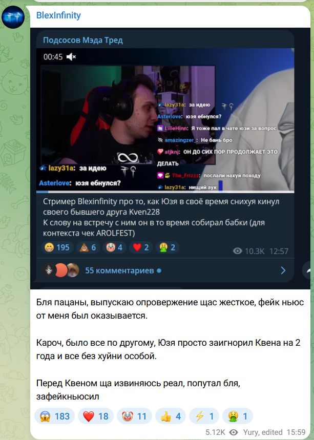 Я думал, он будет извиняться перед зрителями и старыми друзьями, хпгшными стримерами, а он просто хуйню какую-то напиздел с три короба. Явахуе, если после этого к нему вернутся зрители и понесут деньги, то это самые натуральные терпилы дауны, как и он сам.