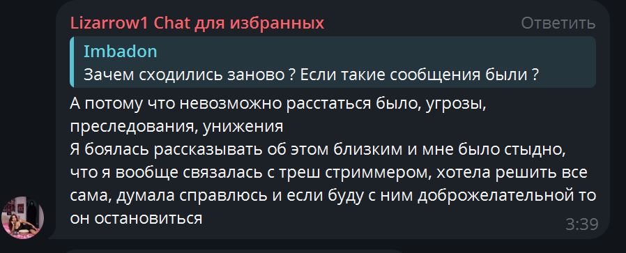 >>25570093 >>25568535 На удивление Пчела проявил в кое то веки гибкость в общении с тян, не хамил со старта, не оскорблял с ходу в стиле "cосала сперму глотала" не руинил специально, сильно не наседал, возможно действительно дропнул любую возможность воссоединения с Лизой, кароче стрим был смотрибельный, но репутация долбоёба треш стримера, так или иначе всегда будет напоминать о себе. Тян нашли хейтеры в соц сетях и скинули ей кто такой Пчела, ну и она практически на ходу роняя кал вышла из тачки.