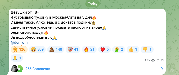 >>25634062 Я сделал вывод что никакого смысла в этом москва сити нет, только в минус улетаешь. Лучше бы Селя снял частный дом и там завозил. Вон как петрушка снимал на др с бассейном. А хуль снял на 3 дня, это пиздец. От квартирного трешака ничем не отличается абсолютно, только вид на небоскрёбы. ТОЛЬКО ВИД. ПС Селя если ты это читаешь, то от квартирного трэша это ничем не отличается, ты всё это мог бы провернуть в обычной квартире, разницы нет. Москва сити по сути приносит только проблемы и головняк на их решения. Я бы на твоём месте больше не проводил там стримы.