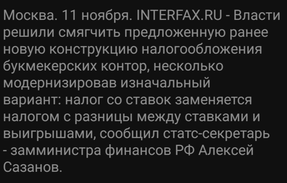 Кому-то блокировка интернета и утильсбор на элентронику, а кому-то смягчение налогов. Когда букмекерами владеет гэбуха, то и налоги правительство делает помягче.