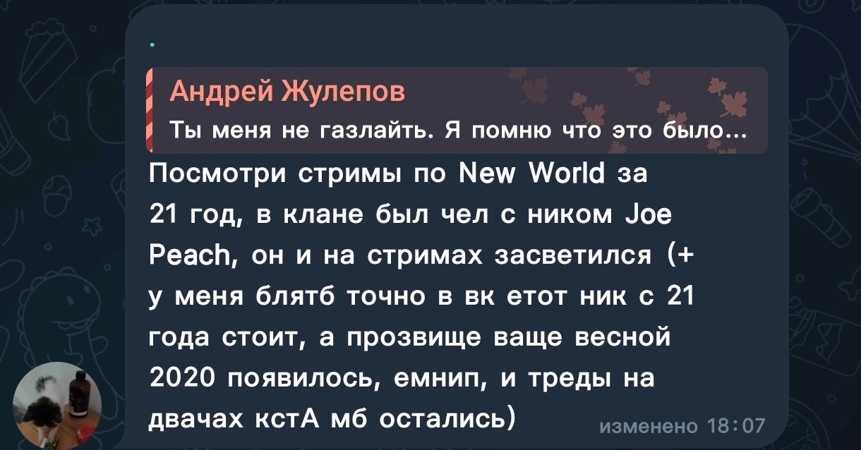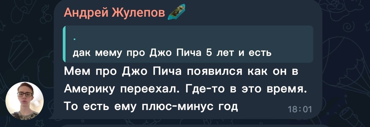 >>25574185 Я доскроллил, увидел, что первое сообщение было около стрима по Владик бруталу, то есть год + 3 месяца. Ты прав, что он в чате Чмодья сидит не с момента форса рыжопич, но я этого не мог знать, потому что в этом говночате не сидел никогда. С другой стороны, в тех чатах, в которых сижу я, этот чел появился в момент форса рыжопич и пукал про то, как она его забанила постоянно. Вопрос закрыт.