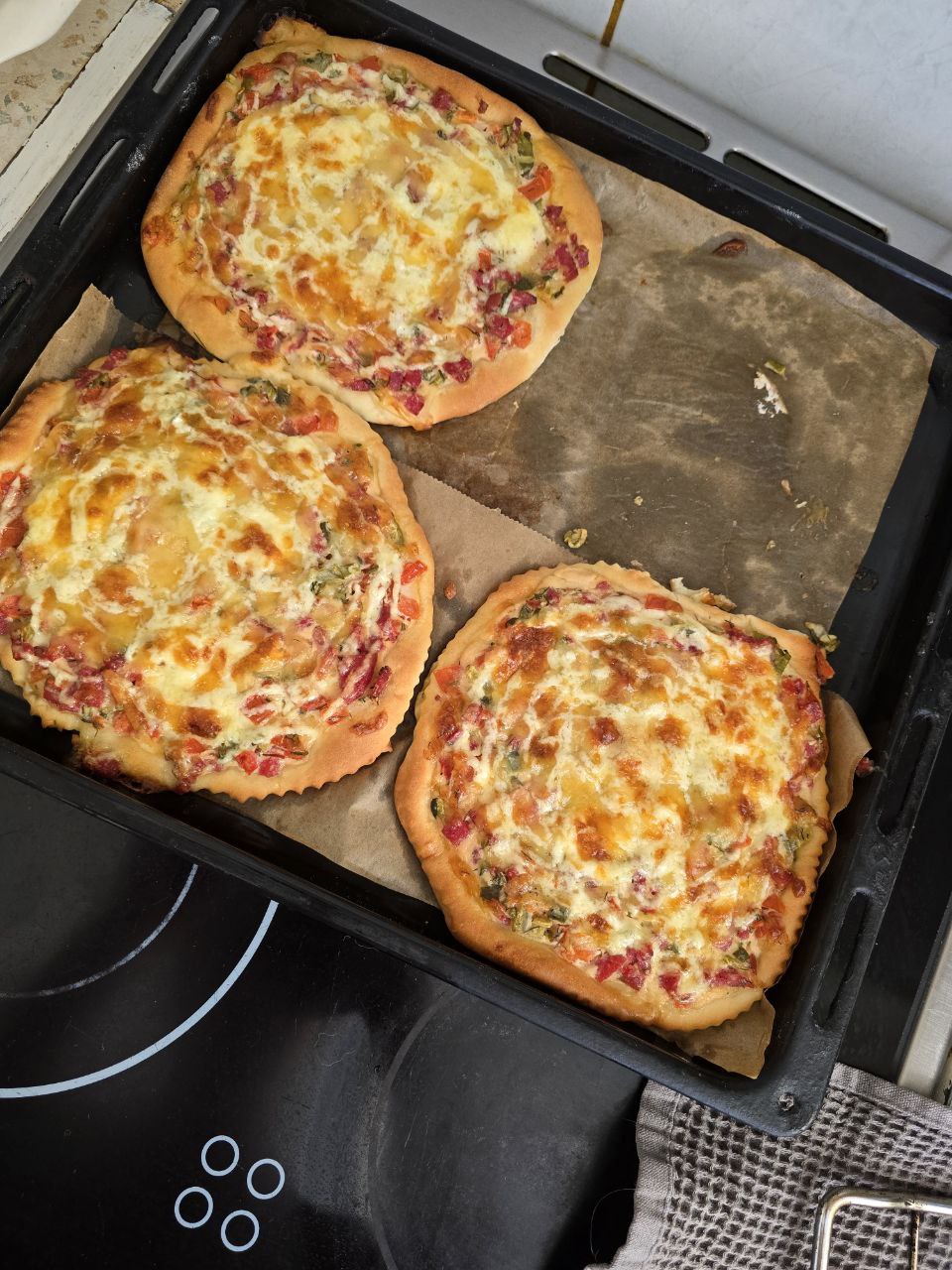 >>25576795 Самое тупое, бессмысленное просирание продуктов. Надо было раскатывать тесто на весь лист и потом резать готовую на четыре части. А так они просто треть пространства противня оставили пустыми.