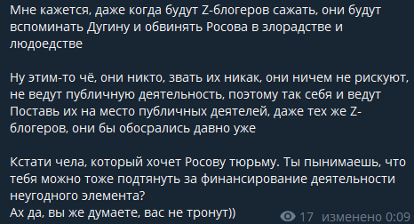 >Зачем мне тебе донатить? Ты состоишь в иноагентской организации "Гроза" Николая Росова, которая устраивала книжные клубы с целью формирования временного правительства и покупки оружия.