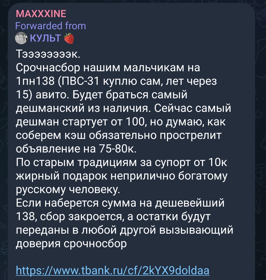 Если ты делаешь срочносборы, тебя будут по ст.222 ебать, так как ты не представитель правительственных структур и не должностное лицо, а сранный "общественник" >Я так понимаю третья ссылка это про покупку автоматов, если мы допустим что кто-то делал сборы, то там нет ничего про ответственность тем кто донатил, а только классификация про использование сети Интернет для покупателя. Не только автоматы, и тепловизоры проходят и даже ебаная рукоятка или приклад. То есть ты просто снабжаешь людей около-боевым снаряжением, ты уже подпадаешь по сути. Мне кажется даже аптечки посчитают, как снабжение вооружением людей при желании.