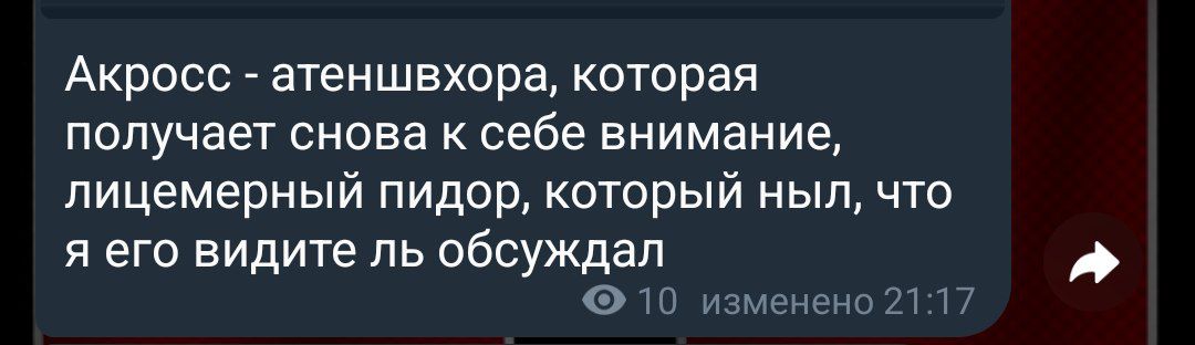 >Так я его не обсуждаю, я просто упоминал какого-то рандома, который вьебал 300к. Имя Акросс нигде не фигурирует "Я не буду упоминать, но я думаю вы поняли..." Ты, кстати, имеешь ко мне претензии. Я тебя слушаю