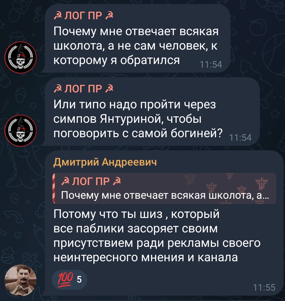 >Чел, ты просто не вкурсе, что под "сталкером" она имела ввиду Акросса, который вроде как писал постоянно ей в личку. Мне больше интересно вот это на самом деле. Она реально вот так обосновывала мой якобы "сталкинг"?