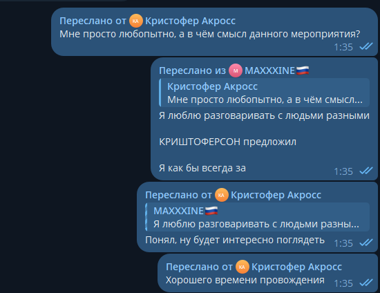 >Готов поставить на то, что создают прецедент, чтобы оправдать "доксинг" меня)) Нужно записать видео, где ты выражаешь ноту протеста и осуждаешь Максин, объясняя почему с ней не стоит иметь дел, иначе пойдешь соучастником.