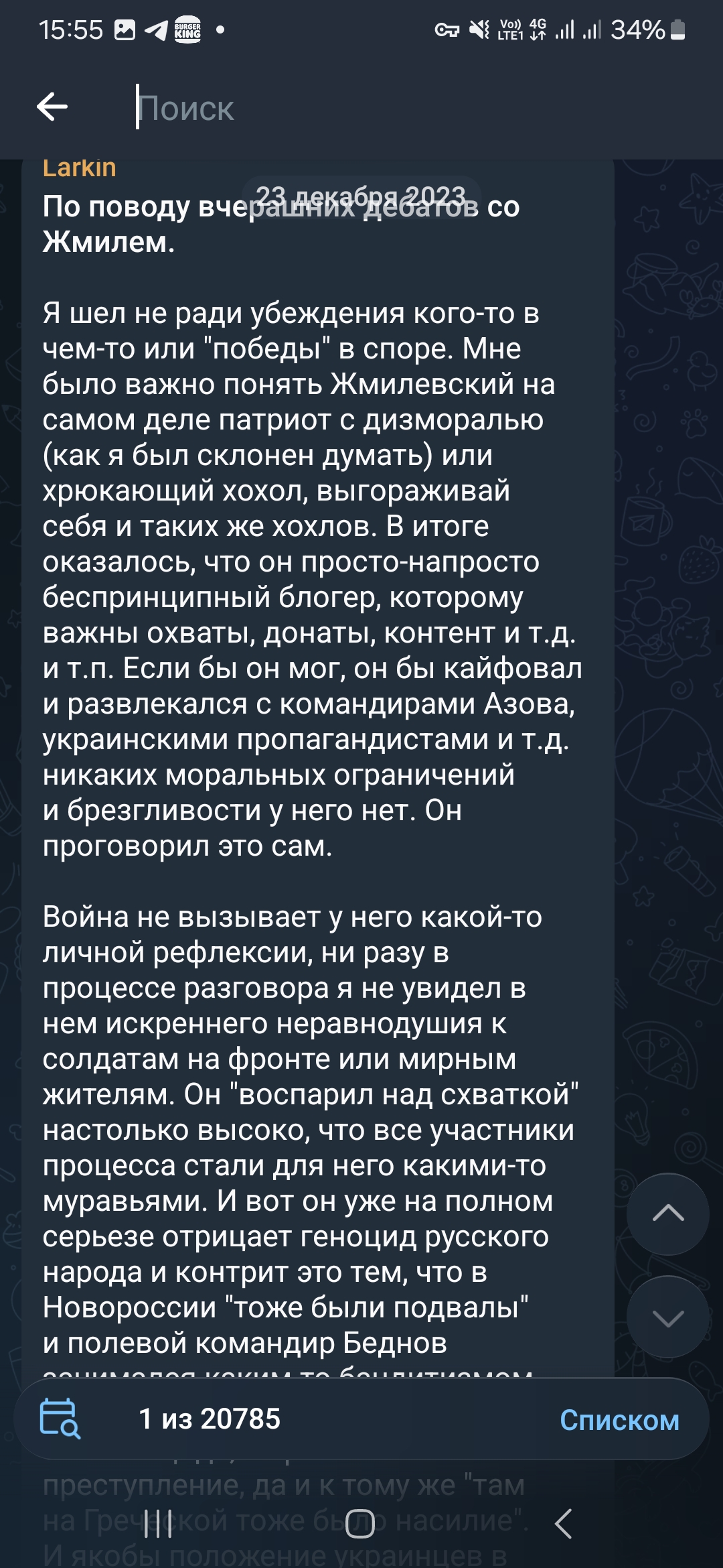 Я просто в ахуе. Криштоф даже не поискал пост в тг Ларкина, посту без 3 дней два года, а он за свежачек выдает. Тут даже нужды нет десятки стримов смотреть, просто найти пост по ключевым словам