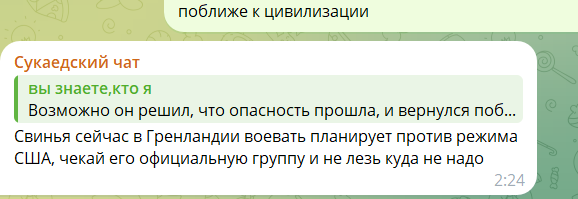 >>26121152 А Спасибо. Жду желающих в телеграмме. Я блять не поверю что из Москвы и окрестностей я один. 1/10 России здесь живёт, в конце концов. Так же, я сейчас порассуждать, и вывел следующую дилемму относительно Штормов и Влада: 1) То самое сообщение Страпокла пошло от гиросу, исключительно из их ТГ канала. Это значит, что у них был или есть эксклюзивный канал связи с Владом. Либо это фак. Почему я считаю это несправедливцм рассуждением: 1) мне все таки кажется, что сгенерить на 2 минуты нейронку без артефактов в голосе невозможно (или очень сложно). Кулич как то общался с нейронкой Влада на стриме. И там сразу с первых секунд стали слышны огрехи. Здесь же такого и близко нет 2) Сообщение согласуется с реальностью 3) Непонятно почему в ином случае Гиросы прекратили преследование Влада. Странно так совпало, что Влад прекращает стримы, а эти генерят фейк. Да и зачем? Показали бы, что он не стримит, и все. 4) Их реакция на поиски мои в тг.