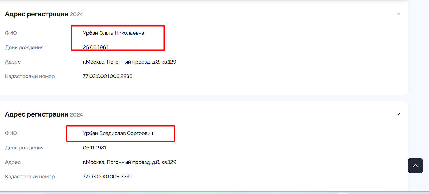 Кстати, я сейчас пробил мать Урбана. Она на том же адресе сидит, и у нее тоже есть инвалидность. Но почему-то следов полета назад нет. Также, как и всплывало раньше, у нее есть , Берёзовая аллея, дом 7В, 9 подъезд, 6 этаж, квартира 308 в собственности. Я вижу картину так: Владыка осталась в Греции, но имеет доход со сдачи квартиры и инвалидности, за счет чего и живет. Господин Урбан живет на старом адресе своей бабки, получая пенсию по инвалидности+ подачки от мамки, возможно.