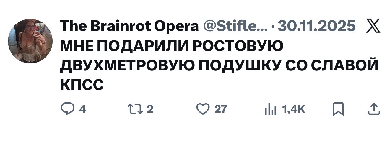 А вдруг у окси на самом деле все хуево. Реально рак какой-нибудь. И он решил перед смертью приколоться, мол, да не, у меня все хорошо, отдыхаю под пальмами, болезни никакой нет... Я сейчас расплачусь девочки... А потом он решит передознуться чтобы не умирать медленно и мучительно. И все будут гадать к чему был кринж альбом. А другие вспомнят строчки про это был не передоз и не самоубийство. Но это реально будет он потому что окси траванули какой-то хуйней и теперь он неизлечимо двигается к смерти