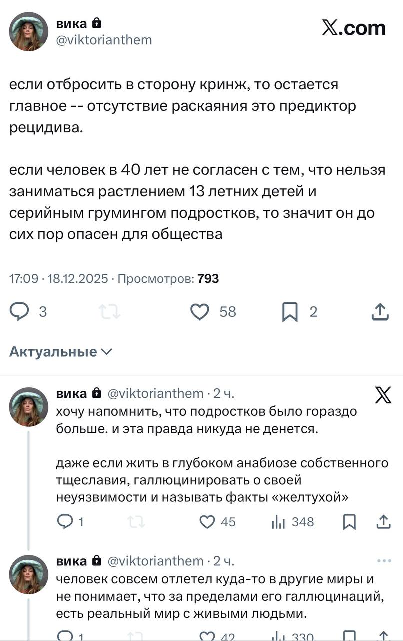 >>25832704 Причом пост я написал... Я сам в ахуе. Горжусь только что пост с родного аниме форума выстрелил, а не от вниманиеблядей из тгшки с которыми ты ща кентуешься.... Но пакета надо ебашить чтобы не зазвездился. Кумиров нет. Да и вообще еще после айшагейта понятно что раскопка грязного белья +/- аундер реперков приносит фейм. Ну не прям про ундер про которых полторы калеки знает, а так немного хуйповых как пакетик и прочие причастные к лору антихуйпа.