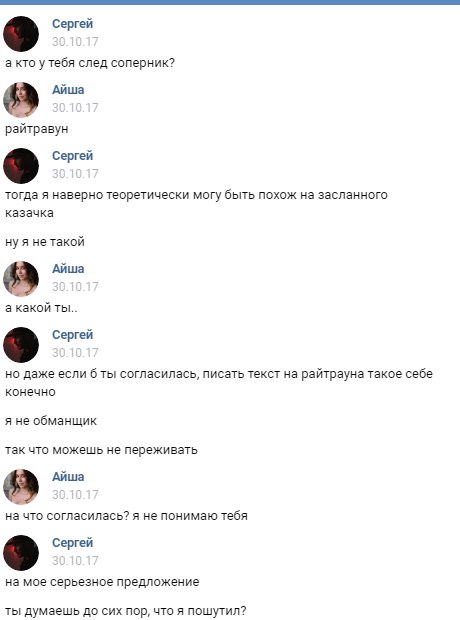 Быстро, нахуй, открыл все ссылки, которые я тебе скинула и читай, нахуй. Уёбок, блядь, хуесос конченный. Сука, из-за тебя пидораса, блядь, у Димы очко сгорело нахуй. Он меня пас с первой моей фотки раком, блядь. Он тёк по мне. Он себе искал, ждал, блядь, покорную казашечку, нахуй, чтобы её ебать жёстко, нахуй. Ты даже это не мог понять, то что Дима тебя заебал этими вопросами - "что с Викой?", "как с Викой?", блядь, куколд ёбаный. Твой друг, блядь, товарищ сломал жизнь твоей бабе, нахуй. На которой ты жениться собрался, с которой ты, блядь, дом в Лондоне собрался покупать, хуесос ты ёбаный. Блядь, Мирон, какой же ты жалкий, сука! Живи, нахуй, со своей НЛОшкой обосранной. Вот ты её и достоин, два пидораса, блядь. Хватит мне жизнь, нахуй, портить. Я только, блядь, начинаю нормально жить. Только, блядь, начинаю находить нормальную работу. Ты пидорас, блядь, со своей хуйнёй ебаной, блядь, лишаешь меня всего! Лишаешь меня мужика! Лишаешь меня четвёртой работы подряд, блядь! Будь ты проклят, уёбок ёбаный, блядь. Трубку возьми, нахуй!!! Возьми трубку, хуесос обоссанный. Я от тебя, сука, не отстану. Я, сука, от тебя не отстану! Мой батя сказал, что он тебя утопит, нахуй. Понял меня, блядь?! Он тебя, блядь, якорем ёбнет и утопит тебя в лодке, хуесос блядь.