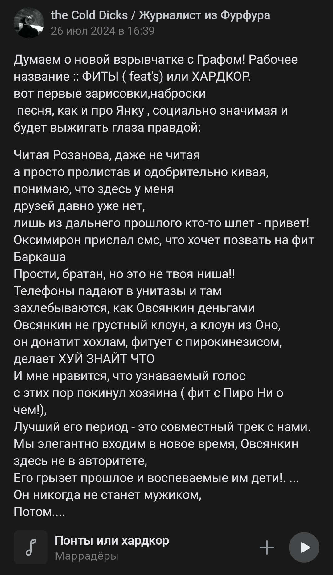 Вот такие посты кстати нашел может интересно будет. Тут про овсянкина https://t. me/nebolno666/750 https://t. me/nebolno666/751 https://t. me/nebolno666/752