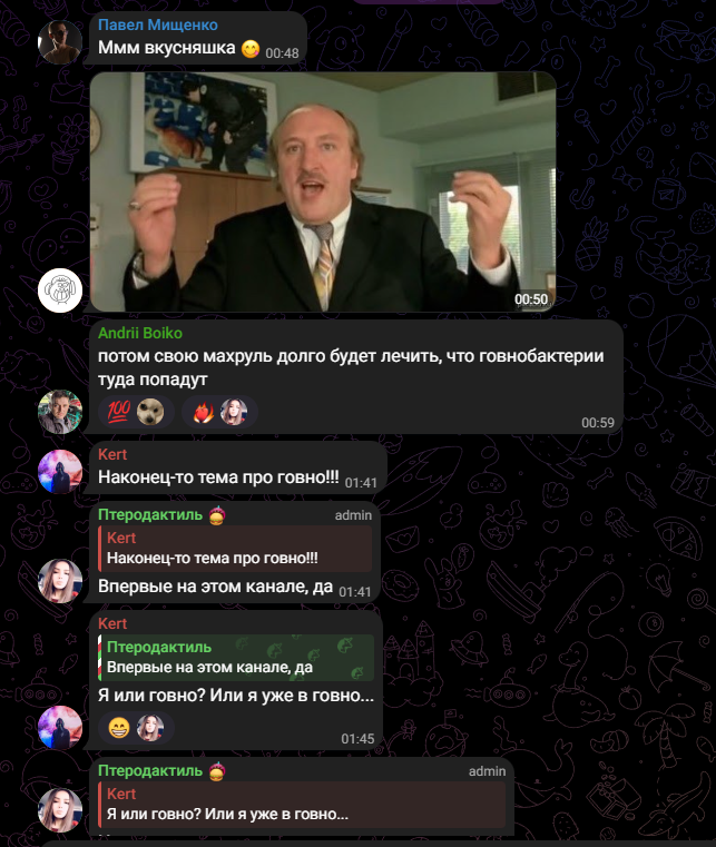 Основная тематика последних стримов Петюни разительным образом схожа на легендарную пасту Вована. Сербский бомжара рассуждает о том, насколько полезно обмазываться говном, жрать говно и наслаждаться говном, буквально, а не фигурально. В целом пропаганда ведется на всех уровнях, включая картинки с видами говна в Телеге, призывами рассказать, кто и как посрал и связанными с говном конкурсами. Словом секту мочеглотов активно приобщают к копрофажеству.