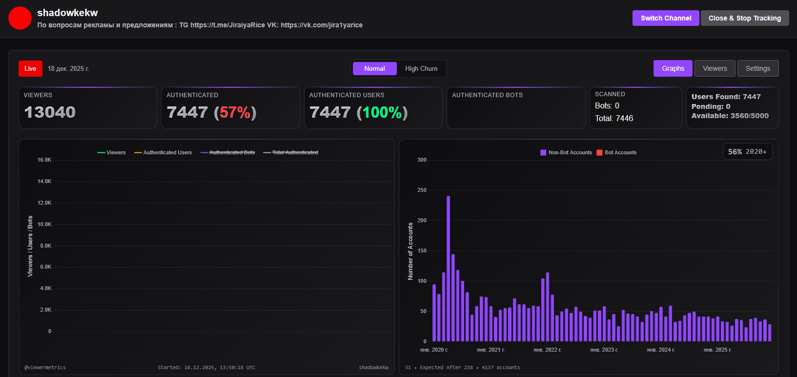 >>25824097 тут проблема не в этой накрутке дешёвой, кек давным давно крутит нормальных ботов, проблема в цифре 13к, у него на соло стримах ласт время меньше 20 не бывает, а тут гп. а с накруткой этой это ошибка просто какая то, он не стал бы таких ботов крутить, но эта ошибка и спалила.