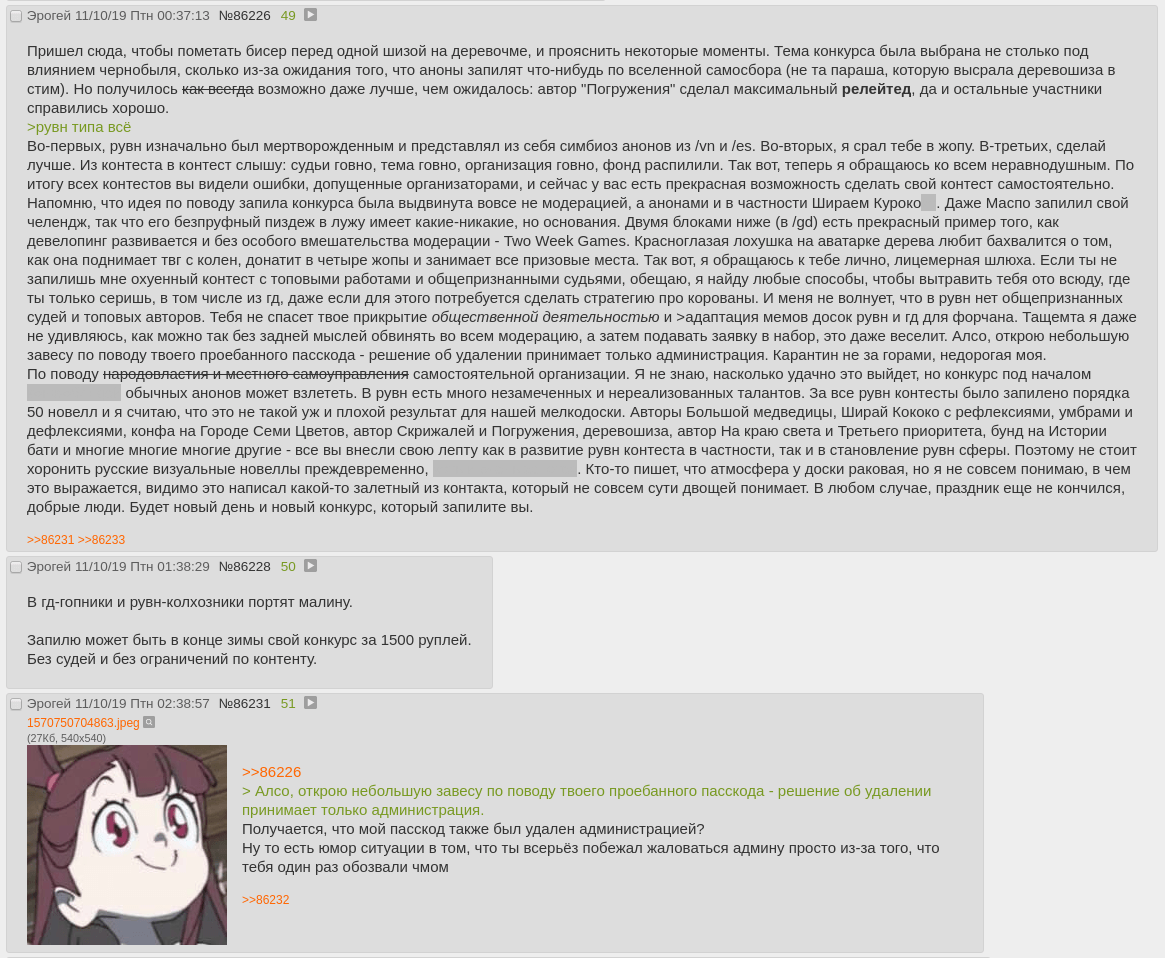 Слив катку в визуальные новеллы ренпаепетушки из /ruvn/ уже почти добились закрытия раздела посвящённому разработке видеоигр /gd. Но они не были готовы к тому что Александр "Птааг" Головань (пророк треда Голова дай денег) запишет жалобное видеообращение к Абу и тем самым сохранит существование раздела /gd!