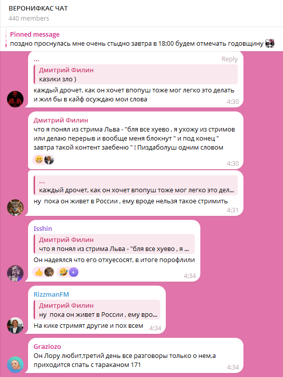 Некоторые чаттеры, конечно, негативно это всприняли, что Лев общается с теми, кто напрягал его приятелей.