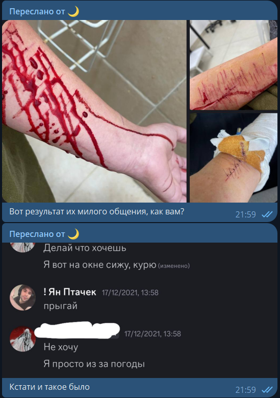 Значит так, эта Саша в 14 лет пообщалась с данным челом. Он ее заставлял резаться, наебывал что встретятся. Потом довел до резни рук. Наебал на бабки. Теперь она двинулась головой и пишет что он красавчик. Сливает какую то хуйню и пишет доносы на Настю на дваче и в полицию. Уровень шизы данной Александры имажинируйте.