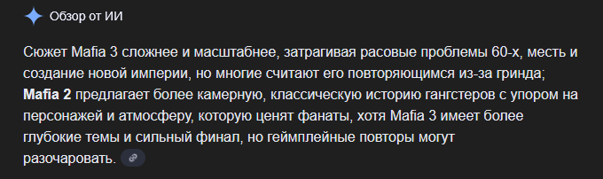 бля чел я даже эту хуйню читать не буду. я играл в мафию 3, и ахуел с сюжета, в частности с его повествования, который гораздо глубже, многогранней и глобальней, чем терки итальянской гопоты. любому человеку с асику 130+ это очевидно. а еще это наверное единственная игра, которая так смело показывает коррупцию сша. это еще +1 бал за смелость. так что если честно, мне похуй, я доказывать даже не хочу ничего, поэтмоу мне было похуй и я скормил твой гринтекст нейрокалу.