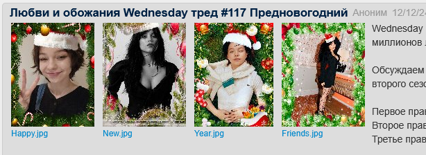 Вкат в ПРЕДНОВОГОДНИЙ. Это мой 1й Новый год в данном треде, и это круто Скорее бы новый год, эх. быстро же вы перекатились и написали дохрена сообщений, я в шоке. >>25838812 >Эмму больше верю, чем в Дженну бля, у тоже такое чувство. Но образ Венсдей всегда будет прекрасен)