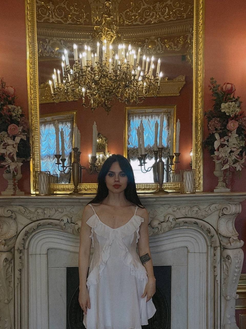 дальше промотаю события до утра. все уже разошлись, на танцполе осталась только Скума. она сидела на коленях то ли от усталости, то ли от веществ. на неё было такое тёмное с фиолетово-розовыми растениями платьей плечи закрыты но был такой овальный вырез. я стоял в этот момент базарил со своими челами в сторонке, бросил на неё взгляд и дальше продолжил общение