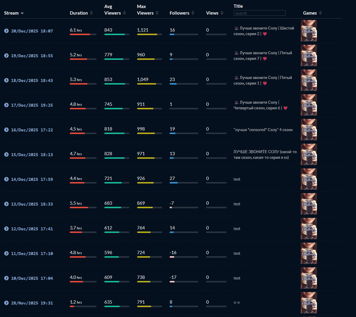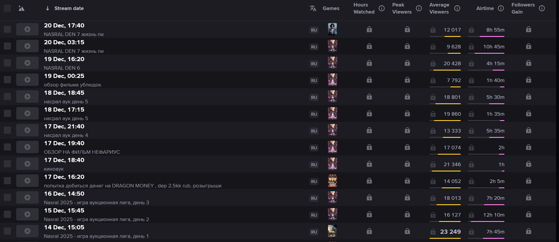 >>25846462 просто посмотрите на этого пиздабола дениса хамитова пидарас с пришитыми сиськами в декабре из 21 дня стримил только 11 дней, и ВСЕ стримы не больше 5 часов почти, только 1 стрим был 6 часов то есть эта хуйня не стримит нихуя, еще и что-то пиздит и все это афк контент, где он просто смотрит сериалы