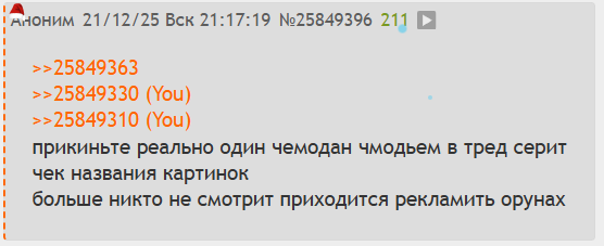 >>25849363 >>25849330 >>25849310 прикиньте реально один чемодан чмодьем в тред серит чек названия картинок больше никто не смотрит приходится рекламить орунах