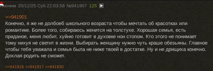 >>25850443 Почему же, у меня до сих пор перчик по утрам стоит, да и в целом реакция организма на порнографический материал, имеет место быть. Я просто разочаровался и осознал, что есть отношения в принципе на основе анализа других пар. Выявил закономерности. И похоть стала мне отвратна. Многие ведутся на женщин из за внешности, словно какое то проклятие, даже если сам человек, полное дерьмо.