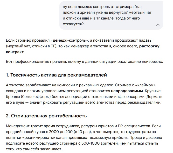 >>25856098 >9к зрителей Не просто зрителей, а зрителей Ильи Мэда. Вы почему-то не берёте во внимание тот факт что чмудуш это чмудуш, он будет стримить по расписанию и никуда не денется, бизнес спать придёт, а Илья Мэд завтра уйдёт и всё, кто заменит отца? Никто не заменит, разве что голосовые в тг.