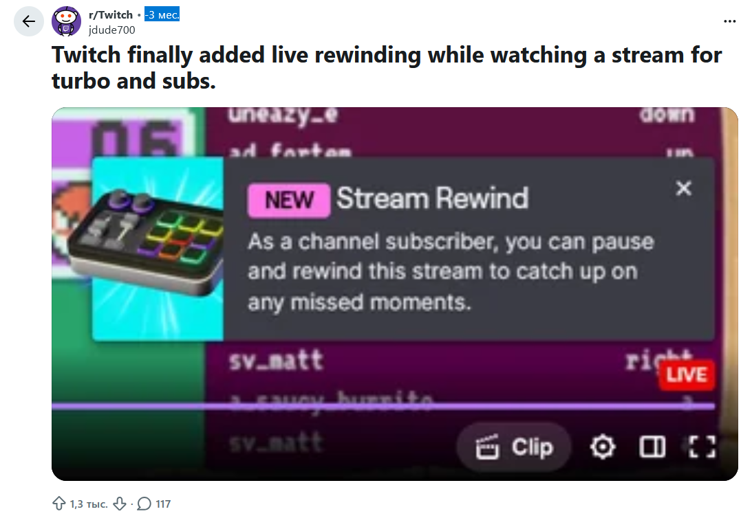 >>25865093 да всегда так было, даже без акка во время стрима выходишь на страницу стримера где воды там сразу крайнее видео с текущей трансляцией как запись уже висит, включаешь его и мотаешь сколько надо