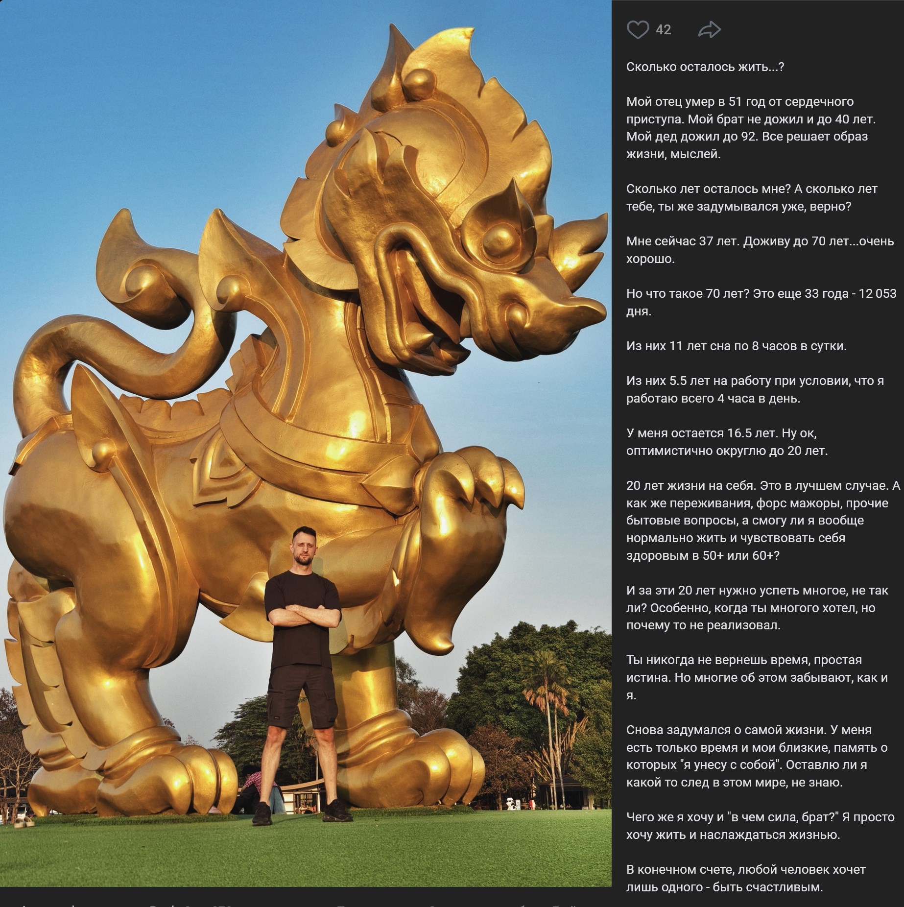 Вообще удивительно, что в эмиграче и ЮВА вообще не нашлось никого, кто мог бы Бороду взять а какое-нибудь стоящее дело по его основной творческой специальности, хотя бы играть на гитаре в клубах по вечерам. Помнится, на Workaway было интересное предложение поступить смотрителем в music-themed guesthouse, но оно оставило Бороду равнодушным. На последнем стриме он с отчаянием говорил, что понимает, что в мире где-то непременно должны быть для него возможности, но они недостижимы. И настолько он уверен был, что не преуспеет нигде, что получалось самосбывающееся пророчество.