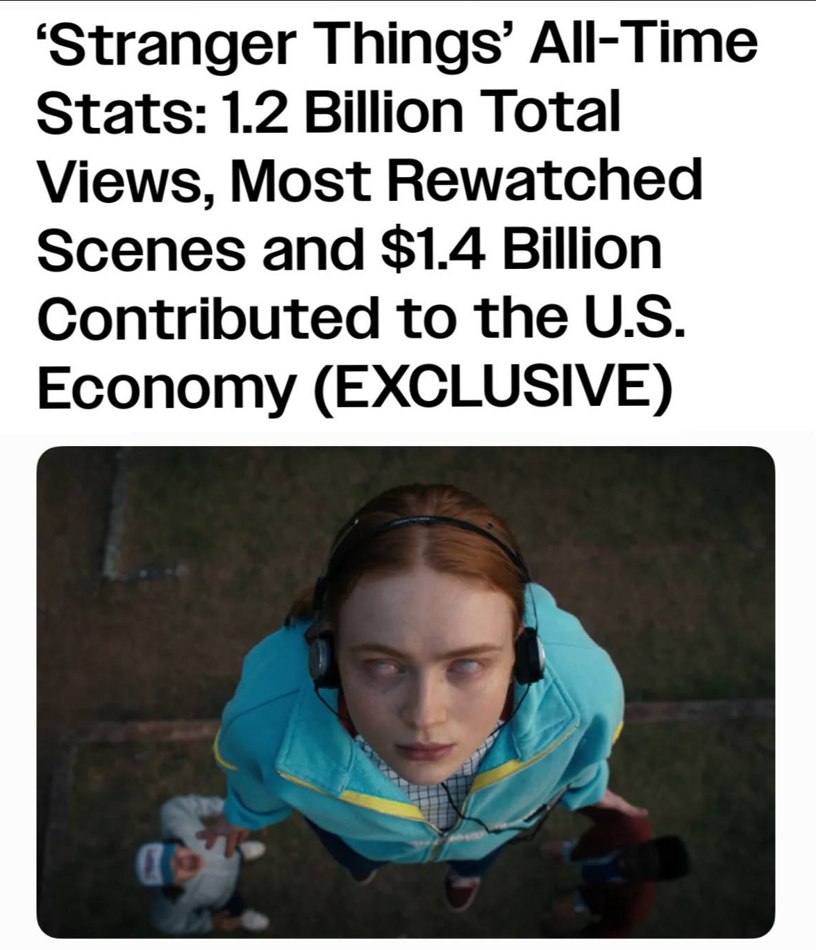 «Очень странные дела» стал самым популярным сериалом за всю историю Нетфликса. Он собрал уже 1,2 млрд просмотров, обойдя «Игру в кальмара» и «Уэнсдей».