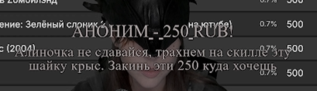 ИЛЬЯ ЖОПИЧ, ОБРАЩАЮСЬ К ВАМ ПУБЛИЧНО. ВЫ ОЧЕНЬ ЗРЯ ВЫЕБНУЛИСЬ НА НЯШУ АЛИНОЧКУ. УВИДИВ ВАШУ ГНИЛЬ, ВСЕ НАШЕ СООБЩЕСТВО КИСИКОВ СПЛОТИЛОСЬ ВОКРУГ АЛИНОЧКИ. ТЕПЕРЬ КИСИКИ СДЕЛАЮТ ВСЕ ЧТОБЫ ОБЕСПЕЧИТЬ ПОБЕДУ АЛИНОЧКИ В ИВЕНТЕ.