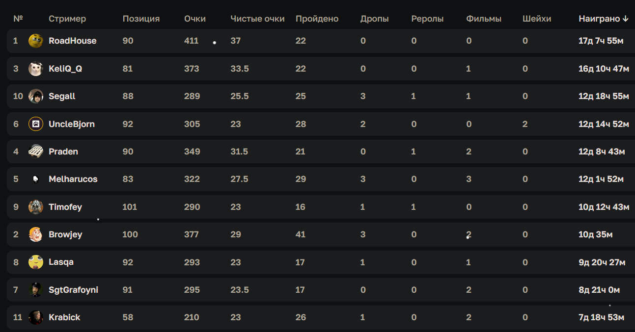>>25873081 В верхней части Дюша интересен тем что выбравшись из тюрьмы Таркова показывает хороший результат, а ведь Илья предрекал ему дроп фоллаута первого. Его бы на Аукус вместо кели и ивент уже был бы более престижным по именам, сам он показывает что может много стримить и проходить разные игры.